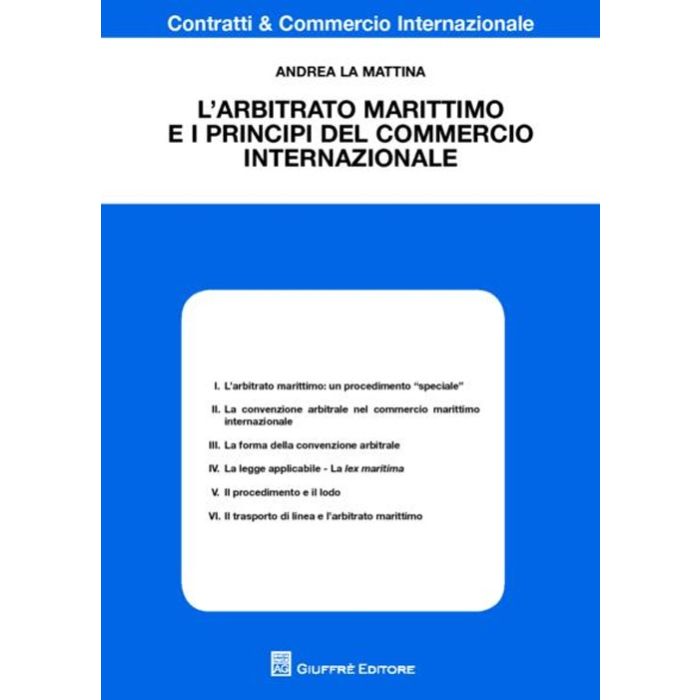 A dispetto della sua notevole rilevanza nella pratica del commercio internazionale, l'arbitrato marittimo non ha sinora costituito l'oggetto di un approfondimento monografico da parte della dottrina italiana. Il presente lavoro intende colmare tale lacuna, analizzando l'istituto alla luce della giurisprudenza italiana e straniera e dei regolamenti delle più importanti camere arbitrali internazionali (in particolare, della London Maritime Arbitration Association e della Society of Maritime Arbitrators di New York) ed evidenziando gli elementi di specialità dell'arbitrato marittimo rispetto all'arbitrato commerciale internazionale.