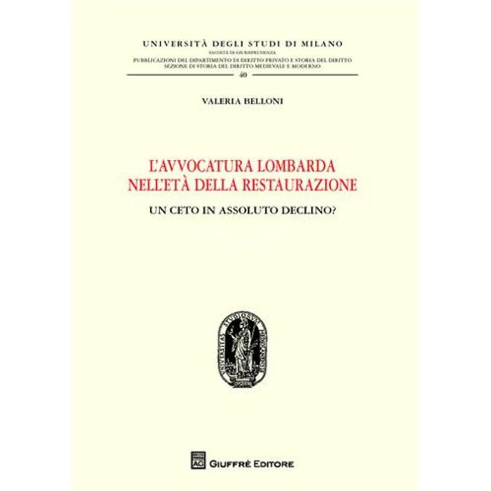 Il presente volume approfondisce la condizione dell'avvocatura lombarda nell'età della Restaurazione sotto molteplici profili: una prima parte del lavoro analizza l'apparato normativo di riferimento e gli aspetti politico sociali, mentre la seconda si sofferma sull'attività professionale, attraverso l'analisi di numerose allegazioni.