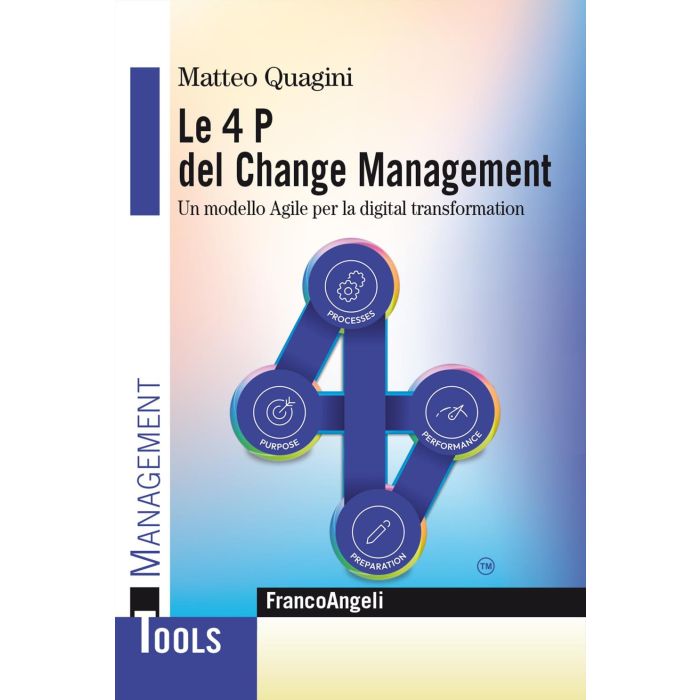 Massimo Dal Checco, Prefazione Introduzione: il metodo delle 4P per governare la digital transformation La gestione del cambiamento: che cos'è e come deve essere affrontata a livello individuale e organizzativo (Il modello delle 4P: la gestione del cambiamento visto come un processo di trasformazione; L'importanza di integrare la gestione dei progetti (the technical side of change) con la gestione del cambiamento (the people side of change); Organigramma di progetto e ruolo del team di change management; Il ruolo cruciale del middle management nei cambiamenti organizzativi; Gestire l'inerzia organizzativa al cambiamento; Capitale intangibile e gestione del cambiamento; Conclusioni: concetti fondanti il modello delle 4P del cambiamento organizzativo Agile) 1P come Purpose - Chiarire la strategia alla base del cambiamento (Come definire e presentare gli obiettivi alla base del cambiamento: SMART Change Management Canvas; Conclusioni: comunicare gli obiettivi individuali e organizzativi con la SMART Change Management Canvas) 2P come Processes - Individuare e ripensare i processi strategici alla base del sistema profondo aziendale (Catena del valore vs Interaction Field: change management e design thinking; Il lato umano del reengineering: il sistema profondo dell'organizzazione; Comitati di processo: la visione condivisa e integrata dei processi gestionali; Conclusioni: il sistema profondo alla base del cambiamento dell'organizzazione) 3P come Preparation - La gestione delle conoscenze nei processi di cambiamento (Costruire la learning organization nell'era dell'Intelligenza Artificiale (AI); Processi di training: l'approccio "train the trainer"; La preparazione degli UAT come gestione del cambiamento organizzativo; L'organizzazione antifragile: la preparazione mentale dell'organizzazione; Conclusioni: preparazione individuale e di gruppo al cambiamento) 4P come Performance - Gestire le prestazioni individuali e collettive nella nuova organizzazione (Affrontare i processi di collaudo (UAT) e messa in produzione delle nuove tecnologie (cut-over) ottimizzando le prestazioni dell'organizzazione; Resistenza al cambiamento e gestione delle prestazioni; Performance e post go-live: come evitare i ritorni alle cattive abitudini; Organizational readiness: testare le abilità dell'organizzazione ai fini del cambiamento organizzativo; La mappa strategica del cambiamento attraverso il modello delle 4P: vincere la sfida dell'adoption; Conclusioni: il modello delle 4P in un processo integrato e Agile per governare la digital transformation) Change management in azione (Habasit Italiana S.p.a. - Roll-out SAP con metodologia Agile Scrum e 4P CM; Intervista a Gabriella Vaccher; Intervista a Paolo Pedron; MUT Meccanica Tovo S.p.a. - Come coniugare il cambiamento dei processi produttivi in ottica Lean/Kaizen con l'arte; Intervista a Paolo Tovo; Masi Agricola S.p.a. - Il passaggio da azienda padronale ad azienda manageriale quotata in Borsa: il successo di un'organizzazione anche attraverso la valorizzazione dei suoi asset intangibili; Intervista a Raffaele Boscaini) Carlotta Silvestrini, Postfazione: torniamo all'essere umano per far funzionare le macchine Ringraziamenti Bibliografia.