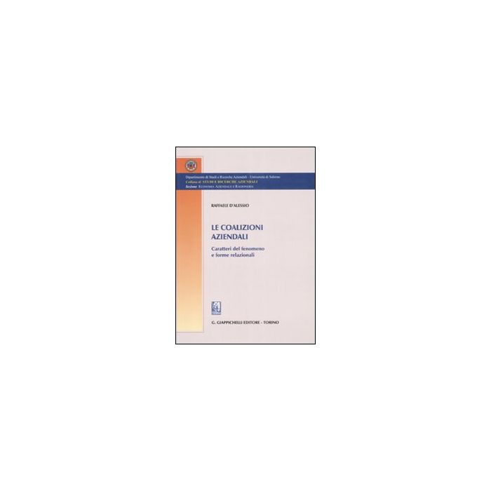 Il libro sviluppa un'approfondita indagine sul fenomeno delle coalizioni aziendali e si articola in sette capitoli. II primo fornisce l'impostazione metodologica del lavoro e segnala le due variabili strategiche della ricerca: la prospettiva che guarda al sistema di secondo livello e l'approccio strutturalista. I capitoli 2, 3 e 4 analizzano la struttura (i membri della coalizione, le relazioni tra loro e il sistema che gli uni e le altre compongono), il funzionamento (l'autonomia, la progettualità, i criteri decisionali, il governo, le combinazioni di processi), le performance (natura e misurazione). Nel quinto capitolo, si analizza la complessa strumentazione a cui ricorre !a network analysis. Nel sesto capitolo si valutano le capacità esplicative e segnaletiche della network analysis se applicata ad uno specifico problema di ricerca, quello dell'analisi quantitativa strutturale delle coalizioni aziendali. Nel settimo capitolo, viene presentata un'esperienza di ricerca condotta sulle coalizioni aziendali che si sono composte, dissolte e ricomposte in uno specifico ambiente di riferimento, quello di un distretto.