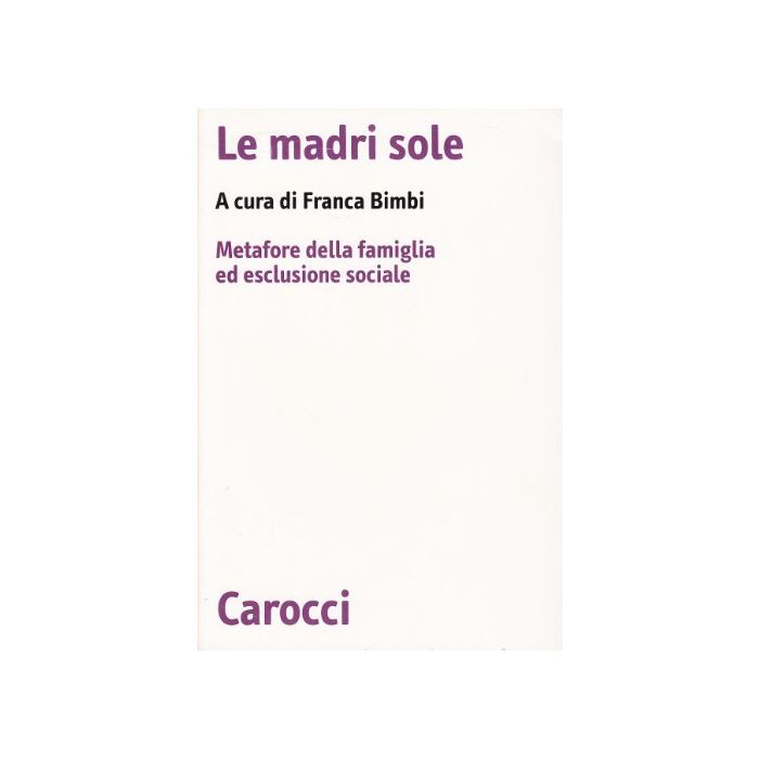 | Indice | 1. Madri sole e povertà nel contesto delle politiche familiari europee, di E. Ruspini/Introduzione: donne e povertà/Le madri sole in Europa: l'invisibilità di un fenomeno eterogeneo e in crescita/Analisi delle politiche per le madri sole in Europa/I casi specifici/ Conclusioni 2. Madri sole, differenze di genere e processi di interdipendenza, di F. Neresini/La rilevanza quantitativa/La condizione socio-economica/Le reti di solidarietà/La capacità di riequilibrio del welfare state/ Conclusioni Parte seconda. Le politiche come discorso 3. Le madri nubili e i loro figli illegittimi: la ridefinizione di un ruolo sociale tra Ottocento e Novecento, di L. Terragni/Maternità negate: l'obbligo dell'abbandono/Un sistema troppo costoso/Gli ospedali di maternità e la lotta contro la sifilide/Madri per forza: le nuove politiche per il riconoscimento e l'allattamento materno/Gli asili materni/Storie di solitudini e di povertà/Conclusioni 4. La costruzione di un'assenza nella storia del sistema italiano di welfare, di S. Simoni/ Introduzione/Indietro nella storia, cercando le madri sole/Diritti delle donne e welfare italiano: 1948-1980/Il discorso femminista sulla maternità: ancora sull'assenza delle madri sole/Quali politiche per le madri sole' 5. Un soggetto tacitato in un regime di welfare familistico, di F. Bimbi/Introduzione/Le madri sole e gli aspetti culturali del modello demografico italiano/ Presenza ed assenza delle madri sole nella costruzione sociale del regime di welfare italiano/Conclusioni Parte terza. Le politiche locali tra sussidiarietà, precarietà e innovazione 6. Continuità delle politiche categoriali e frammentazione del sistema di welfare. Le Province, di M. Bordin e E. Ruspini/Premessa/Il quadro legislativo nazionale e la riforma delle autonomie locali/Il perché della ricerca/I destinatari degli interventi: categorie legittime e reali/Il quadro legislativo regionale/Alla scoperta dei regimi di welfare locali: la frammentazione del modello italiano/La costruzione sociale del soggetto madre sola: competenze e politiche/Il minimo vitale: una politica appropriata'/Conclusioni 7. Madri sole, dipendenza e povertà. Il caso di Venezia, di S. Giullari/Il concetto di dipendenza/La ricerca sul campo/Il ruolo delle istituzioni welfare nei processi di dipendenza/Conclusioni 8. Come i servizi costruiscono le madri sole. Il caso di Venezia, di R. Kyllonen/Premessa/I due percorsi nel servizio sociale/Le madri marginali/Le madri normali/La costruzione del servizio sociale residuale/La "geografia semantica" delle dipendenze/La gerarchia degli interventi/Le modalità di lavoro del servizio sociale/Sulla cittadinanza delle madri sole 9. Da categoria a rischio a soggetto visibile. L'Osservatorio di Ravenna, di R. Sutter/ Introduzione/La normativa categoriale nazionale/La legislazione regionale universalistica/I prestiti sull'onore/I Centri per le famiglie/Conclusioni 10. Napoli: le madri sole povere, di D. Gambardella/ Madri sole e rischio di povertà/Il contesto napoletano e di dati raccolti dall'Osservatorio sulla povertà a Napoli/Le madri povere: madri sole e madri in coppia/Risorse e modelli di dipendenza/Mix delle risorse e mix di dipendenza economica/Osservazioni conclusive Processi identitari e costruzione delle politiche per le madri sole. Storie di vita a Firenze, di R. Trifiletti/Premessa: un diario di ricerca realista/Le policies per le madri sole come "rivelatore" del modello di welfare/Perché la Grounded Theory'/Alcune somiglianze oggettive fra le due condizioni: impoverimento e centralità del lavoro/La riprova della somiglianza della condizione soggettiva di madre sola: l'emergenza della identità nei due percorsi/Conclusioni. Le madri sole ed i progetti di intervento sulla propria condizione alla prova della riflessività |