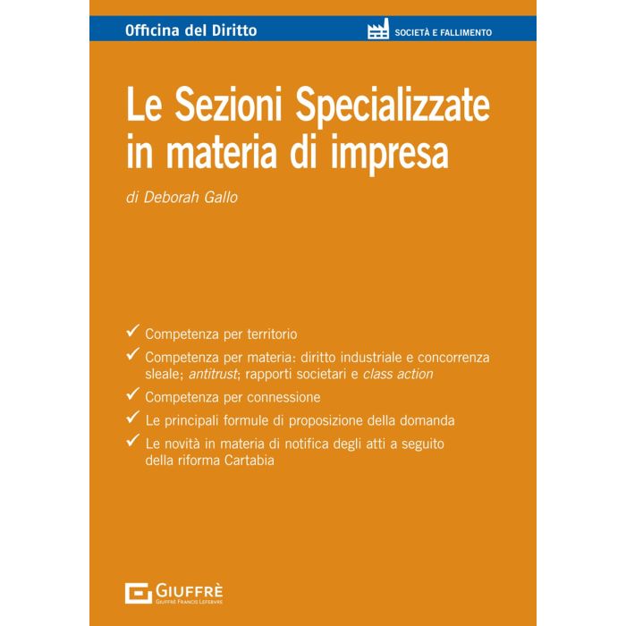 L'Officina compie una ricognizione sull'evoluzione della disciplina delle Sezioni Specializzate in materia di impresa: dopo un excursus normativo sulla genesi - a partire dal d.lgs. n. 168/2003, istitutivo delle Sezioni specializzate in materia di proprietà industriale ed intellettuale, su cui poi si è innestato il d.l. n. 1/2012, conv. con mod. in l. n. 29/2012 - si concentra sulla competenza: per territorio, per materia e per connessione, analizzando in particolare la casistica giurisprudenziale e le questioni controverse in materia di diritto industriale e concorrenza sleale, di antitrust e di rapporti societari. L'Officina offre, inoltre, un modello delle principali formule per la proposizione delle domande. Completa il quadro l'analisi di aspetti pratici della disciplina delle Sezioni Specializzate, tra i quali quello relativo alle notifiche degli atti alla luce delle novità introdotte dalla riforma Cartabia (d.lgs. 10 ottobre 2022 n. 149).