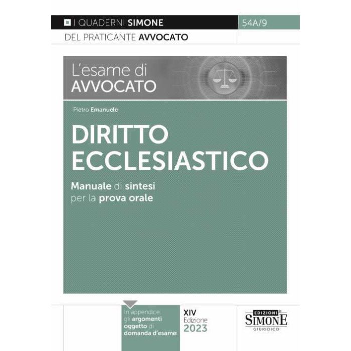 Il Quaderno del praticante avvocato di Diritto Ecclesiastico è un manuale finalizzato alla preparazione delle prove orali dell’abilitazione di avvocato. Si tratta di un esame orale rafforzato in luogo delle tradizionali prove scritte e orali previste nelle sessioni precedenti.