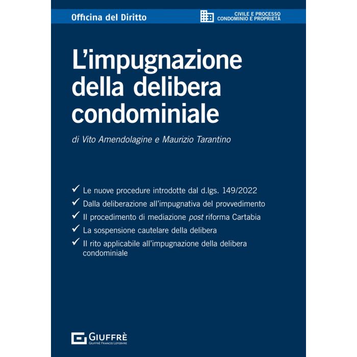 Il fascicolo pone l'attenzione sugli aspetti più rilevanti dell'impugnativa della delibera condominiale, con particolare riguardo alle novità della Riforma Cartabia introdotta dal d.lgs. n. 149/2022. Il testo si sofferma sulle questioni legate all'invalidità della delibera e della tutela dei condomini. Inoltre, affronta i problemi legati al nuovo procedimento della mediazione, le caratteristiche della fase cautelare e le regole del rito applicabile all'impugnazione. Infine, una dettagliata analisi dell'attuale contenzioso e della giurisprudenza rilevante.