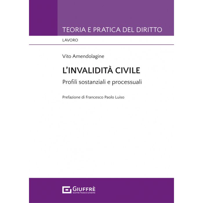 Il presente nuovo volume, inserito nella collana Teoria e pratica, si sofferma sulle principali questioni riguardanti la materia dell'invalidità civile, notoriamente disciplinata da una miriade di norme di rango primario e secondario, il cui incessante susseguirsi nel corso degli anni ha dato vita ad un tessuto normativo variamente stratificato, il quale, inevitabilmente ha contribuito costantemente in misura determinante all'insorgenza di nuovi dubbi interpretativi ed incertezze applicative. La prima parte, concernente i profili di diritto sostanziale, esamina le problematiche afferenti i soggetti destinatari della materia dell'invalidità civile declinata nelle sue varie forme e, dunque, anche da lavoro oltre che per disabilità, i requisiti e genere di provvidenze economiche previste ex lege - come la pensione da inabilità e l'indennità di accompagnamento, l'indennità di frequenza, l'assegno sociale per gli invalidi civili, il regime delle incompatibilità tra le prestazioni economiche e lavorative e le ipotesi di cumulabilità oltre a quelle rilevanti in tema di indebito previdenziale ed assistenziale -, alla luce del quadro normativo attuale, sul quale è recentemente intervenuto il d.lgs. n. 105/2022, che ha introdotto rilevanti novelle in particolare alla l. n. 104/1992, con disposizioni finalizzate a migliorare la conciliazione tra attività lavorativa e vita privata per i genitori ed i prestatori di assistenza. La seconda parte dell'opera, dedicata ai profili processuali, muovendo dall'esame delle condizioni preliminari all'esercizio dell'azione rispetto alla quale sono funzionali le attività preparative, si occupa invece del procedimento di accertamento dell'invalidità civile esaminandone le varie fasi, spaziando da quella concernente la proposizione del ricorso per accertamento tecnico tecnico obbligatorio (ATPO) ex art. 445-bis c.p.c., i requisiti di ammissibilità e la costituzione del convenuto, il perimetro d'indagine riguardante il requisito sanitario distinguendolo da quelli extra-sanitari, a quelle inerenti il deposito della c.t.u., l'omologazione, la liquidazione delle spese processuali e dell'espletata c.t.u., i possibili rimedi esperibili nel caso in cui l'Inps non provveda o ritardi nell'erogare la prestazione economica all'avente diritto e l'eventuale fase di opposizione ovvero quella introduttiva del giudizio di merito, evidenziandone le possibili criticità emerse in sede di applicazione giurisprudenziale. Pertanto, come puntualmente evidenziato nella Prefazione dal Prof. Francesco Paolo Luiso, si tratta di un meritevole ed importante lavoro, idoneo a porre dei punti fermi in un settore, nel quale gli interventi normativi e giurisprudenziali sono caratterizzati da una estrema frammentarietà.