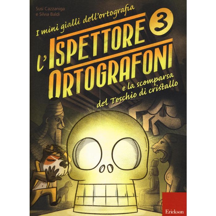 5 libri-gioco per esercitarsi con l'ortografia nella scuola primaria. Una serie che trasforma l'ortografia, spesso vissuta dai bambini come noiosa e frustrante, in un'occasione di apprendimento implicito e divertimento attivo. I 5 volumi hanno un livello di complessità crescente, per uno sviluppo progressivo delle competenze ortografiche e lessicali. In linea con il programma della primaria, ma svincolati da un criterio strettamente legato alla classe, possono essere utili anche in caso di specifiche difficoltà di apprendimento per il potenziamento e il recupero. Nella "Scomparsa del Teschio" di cristallo, risolvendo degli appassionanti giochi enigmistici, il bambino otterrà degli indizi che diventeranno prove schiaccianti per incastrare il colpevole! In questo terzo volume, il bambino si eserciterà in particolare su: parole contenenti digrammi e trigrammi (gn, gl, eh, gh, sc/sch); parole con raddoppiamenti semplici (consonante-consonante/a-o-u); parole con raddoppiamenti semplici seguiti dalle vocali i/e (cci/cce; ggi/gge), parole con raddoppiamenti multipli (cappello, cappotto, pennello).