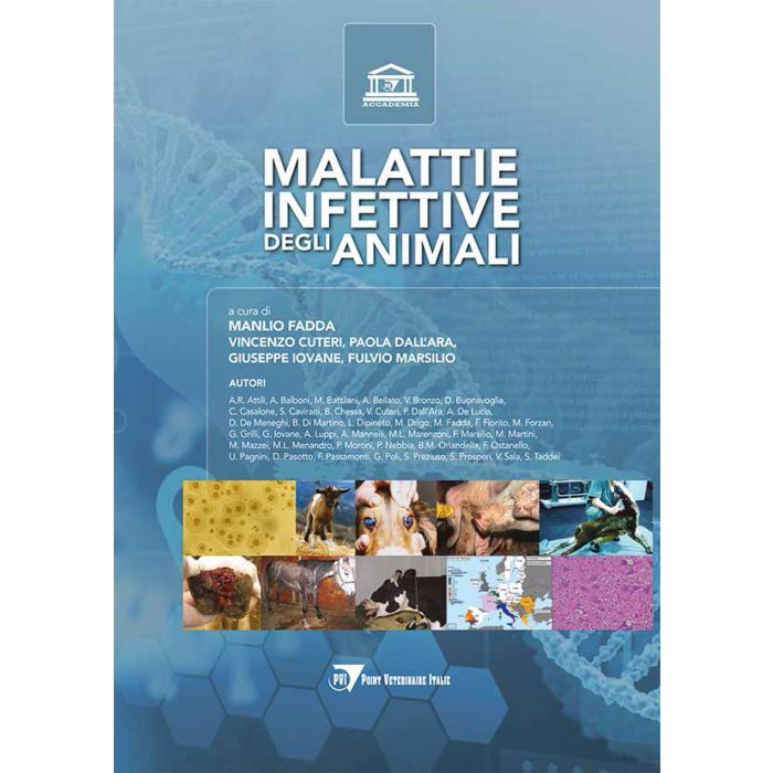 "Malattie infettive degli animali", volume di agile e facile consultazione, mette a disposizione di studenti, ricercatori e docenti un’opera completa e di indubbia utilità , con lo scopo di fornire gli strumenti teorici e pratici per la sorveglianza, la diagnosi e il controllo delle malattie infettive.