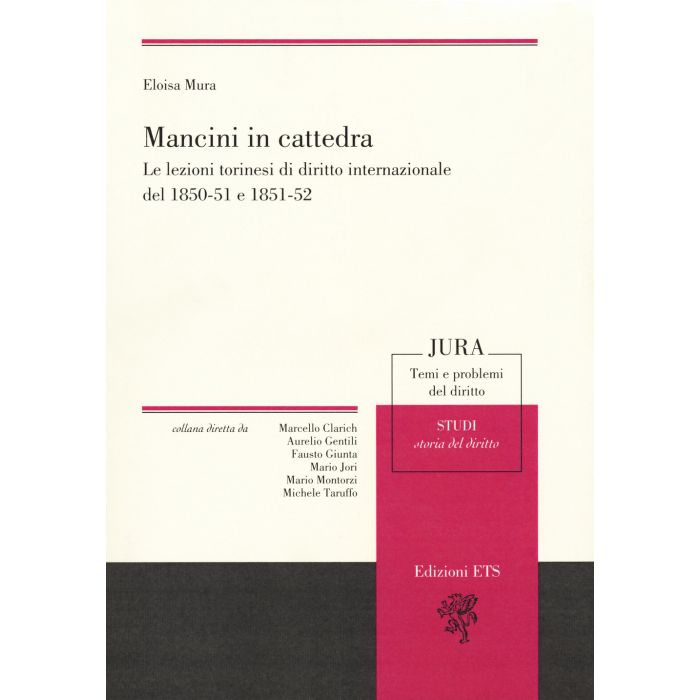L'istituzione, nel 1850, della prima cattedra italiana di diritto internazionale presso l'Università di Torino segnò una tappa decisiva nello sviluppo della disciplina. Fino allora la materia era stata impartita - non sempre e non ovunque - insieme con altre in una posizione marginale che ne ostacolava la crescita, impedendo l'affermarsi dello specialismo. Titolare di quel primo insegnamento autonomo fu Pasquale Stanislao Mancini, per un ventennio unico professore ordinario della materia, che portò nella Facoltà giuridica sabauda le aperture e i fermenti delle scuole private napoletane uniti all'impegno che gli derivava dalla "cultura dell'incivilimento" respirata nella città partenopea. Il ritrovamento del manoscritto del primo corso biennale tenuto dal professore campano negli anni accademici 1850-51 e 1851-52, finora sfuggito all'attenzione degli studiosi e del quale oggi si pubblica l'edizione, consente di vedere in azione quel grande protagonista della vita culturale e politica nazionale, di conoscere le sue parole come vennero dette e contemporaneamente di seguire, nelle primissime fasi, lo strutturarsi della disciplina nell'accademia italiana in uno sforzo di dissodamento che fu inevitabilmente scientifico, oltre che didattico. Il volume, mentre ricostruisce l'impegno profuso dal giurista irpino sulla cattedra, offre così uno sguardo analitico su quella stagione cruciale della storia giuridica italiana.