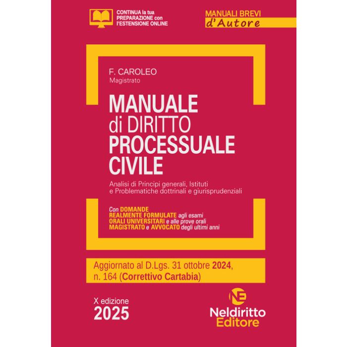 Manuale breve di Procedura Civile. Diritto Processuale Civile 2025. Aggiornato al Decreto correttivo Cartabia 2024 10/e. (Spaziani, Caroleo - Neldiritto)