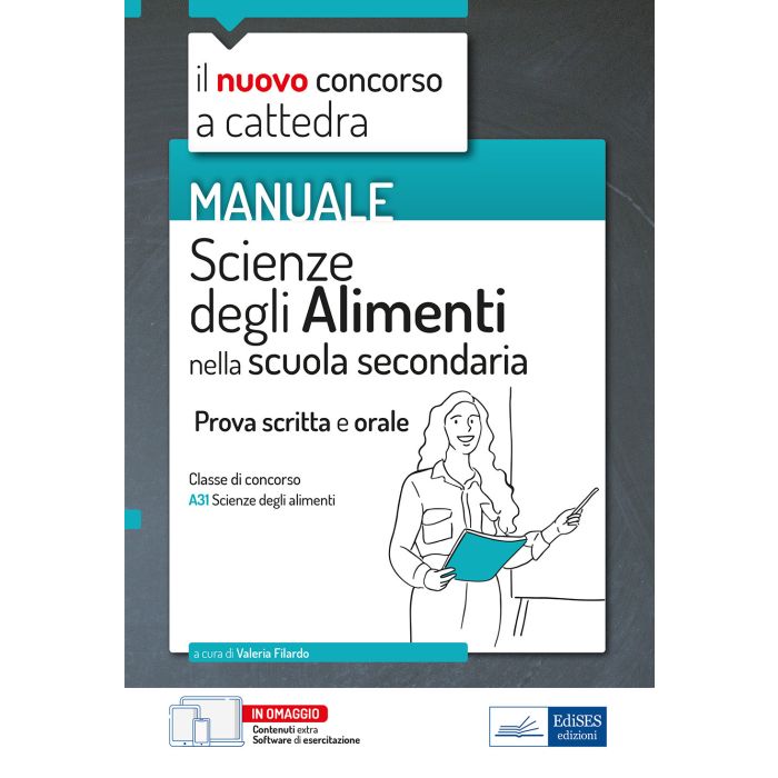 Manuale completo per la preparazione al Concorso a Cattedra - Scuola secondaria per la classe di insegnamento A31 Scienze degli Alimenti. Il volume contiene sia le principali conoscenze teoriche necessarie per superare tutte le fasi della selezione concorsuale sia preziosi spunti operativi per l'ordinaria attività d'aula. La prima parte è dedicata all'Igiene. La seconda parte è dedicata Chimica. La terza parte tratta della Nutrizione. La quarta parte è dedicata all'Alimentazione. La quinta parte analizza le Tecnologie alimentari. La sesta parte del testo è, infine, incentrata sulla pratica dell'attività d'aula e contiene esempi di Unità di Apprendimento utilizzabili come modello per una didattica metacognitiva e partecipativa. Il libro è completato da estensioni online, tra cui tracce ufficiali degli anni passati per la verifica ed esercitazione sulle conoscenze acquisite, nonché da ulteriori materiali didattici, approfondimenti e risorse di studio accessibili dalla propria area riservata.