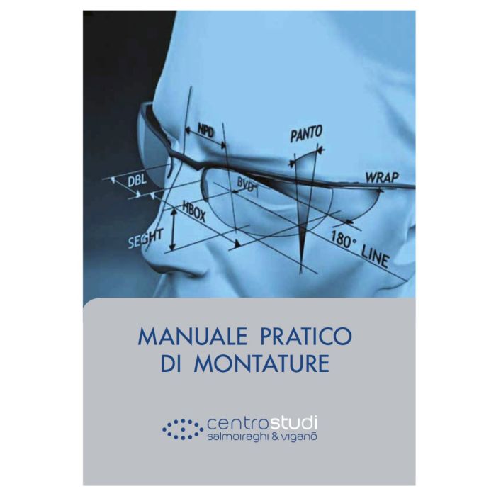 | Indice | 1. Dalla mano agli occhi: breve storia degli occhiali 2. La Montatura • Definizioni • Parti fondamentali della Montatura • Sistemi di misura 3. Montature in materiale di sintesi • Definizioni • Materiali di sintesi • Metodi di costruzione di una Montatura in materiale di sintesi 4. Montature in metallo • Classificazione • Parti fondamentali della Montatura in metallo • I metalli e le leghe • Metodi di costruzione di una Montatura in metallo 5. Montature nel soggetto pediatrico 6. La Montatura per Lenti Progressive 7. Normativa Comunitaria Bibliografia Appendice |