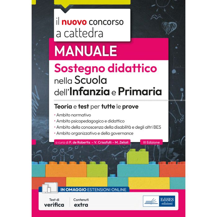 Manuale completo per la preparazione ai Concorsi a Cattedra per i posti di sostegno nellascuola dell'Infanzia e Primaria. Il volume, aggiornato ai più recenti provvedimenti d'interesse, sintetizza tutti gli argomenti del programma d'esame: Ambito normativo; Ambito psicopedagogico e didattico; Ambito della conoscenza della disabilità e degli altri BES; Ambito organizzativo e della governance. In omaggio con il volume, materiali didattici e approfondimenti online.