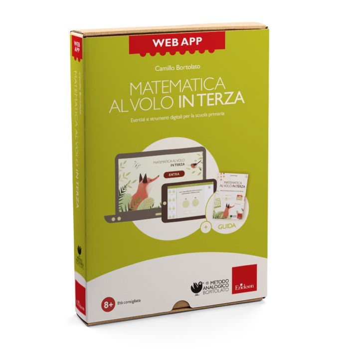 La web app "Matematica al volo in terza" consente di percorrere in velocità il programma della classe terza della scuola primaria secondo i principi del Metodo Analogico. Essa contiene un estratto degli esercizi del libro, opportunamente declinati per l'uso in digitale. Al suo interno troviamo, inoltre, alcuni strumenti utili nelle varie sezioni, come quello delle tabelline, quello delle frazioni o la mazzetta delle divisioni. Dove necessario, la formica darà delle indicazioni audio utili per la risoluzione dell'esercizio, e in tante videate abbiamo la calcolatrice come strumento compensativo. Contenuti: Calcolo mentale, calcolo in colonna, frazioni, numeri decimali, euro, equivalenze, problemi, geometria intuitiva. A chi è rivolto: Agli insegnanti curricolari, di sostegno e a educatori e educatrici per l'utilizzo in classe sullo schermo digitale o nelle attività di recupero e rinforzo. Ai genitori che vogliono aiutare i propri bambini a casa. La web app si può utilizzare su computer, tablet e LIM con i browser più diffusi. Per usare la web app, la connessione a internet deve essere attiva.