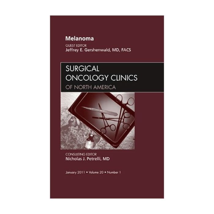 This issue of Surgical Oncology Clinics, Guest Edited by Dr. Jeffrey Gershenwald, presents various articles on the subject of Melanoma. Articles include: Pathologic Evaluation of the Primary Tumor and Sentinel Lymph Nodes; Staging and Prognosis; Management of Primary Melanoma; Management of the Clinically Uninvolved Nodal Basin in Cutaneous Melanoma; Evidence-based Approach to Imaging and Follow-up Guidelines for the Melanoma Patient; Treatment Strategies for the Intransit Melanoma Metastasis; Adjuvant Therapy for Stage III Melanoma; Role of Radiotherapy; Targeted Therapy; Immunotherapy; Assessment of Melanoma-specific Patient Reported Outcomes (PRO); and Metastasectomy for Stage IV Melanoma.