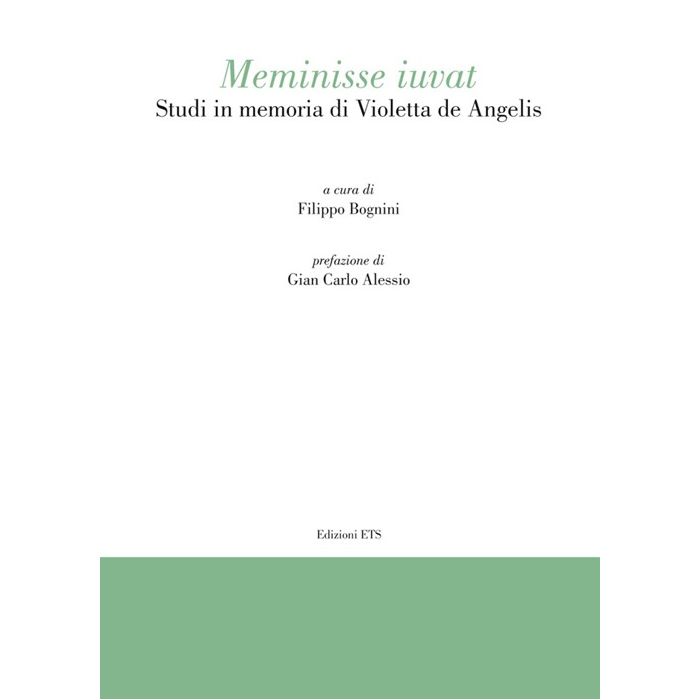 Il volume "Meminisse iuvat" (Stazio, Achill. II 167) intende essere un omaggio alla memoria di Violetta de Angelis (1945-2010) a tre anni dalla prematura scomparsa. Studiosa, docente di valore e persona di grande sensibilità e umanità, si è occupata soprattutto di tradizione classica nel Medioevo e nell'Umanesimo (Virgilio, Stazio, Lucano), di lessicografia, di Dante e Petrarca e ha insegnato negli Atenei di Calabria, Trieste e Padova, fino alla docenza ordinaria di Filologia umanistica e Filologia italiana presso l'Università degli Studi di Milano, dove si era laureata in Letteratura latina sotto la guida di Ignazio Cazzaniga. I trentaquattro contributi qui raccolti, che includono voci autorevoli e lavori di più giovani allievi, afferiscono a diverse discipline e si dispiegano in varietà di argomenti (antichità classica greca e latina e relativo Fortleben; filologia e letteratura latina medioevale e umanistica; filologia romanza; Dante, Petrarca, filologia e letteratura italiana; ecdotica; glottologia e linguistica; bibliografia), restituendo bene la grande vivacità degli interessi, l'efficace e lungimirante impegno didattico, la feconda ricchezza di relazioni interpersonali che hanno caratterizzato la figura e la vita di Violetta de Angelis.