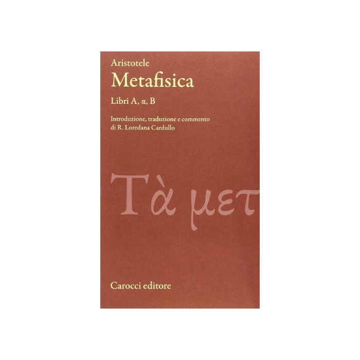I primi tre libri della Metafisica di Aristotele, indicati con le lettere greche A, a e B, costituiscono tre diverse introduzioni al trattato: la prima di natura storiografica e dialettica; la seconda di carattere meno speculativo, perché risalente alla fase accademica del filosofo, antecedente la distinzione tra “filosofia prima”, o metafisica, e “filosofia seconda”, o fisica; la terza di andamento diaporetico, ovvero dedicata all’esame delle difficoltà (aporiai) intrinseche alla “scienza ricercata”. Ciascuno di questi tre libri pone le basi della più matura teoresi aristotelica ed è in virtù del loro comune e riconosciuto carattere introduttivo che in questa nuova traduzione commentata si è scelto di accorparli in un’unica trattazione monografica.