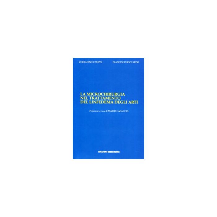 | Indice | CAP. 1 - EPIDEMIOLOGIA, CLASSIFICAZIONE E STADIAZIONE DEL LINFEDEMA - Esperienza clinica - Risultati - Discussione e conclusioni CAP. 2 - TECNICHE DI MICROCHIRURGIA LINFATICA E DERIVATA E RICOSTRUTTIVA - Tecniche di Microchirurgia Linfatica - Esperienza clinica - Risultati - Discussione e conclusioni CAP. 3 - TRATTAMENTO MICROCHIRURGICO DEL LINFEDEMA PRIMARIO ANCHE IN ASSOCIAZIONE A QUADRI PIU' COMPLESSI DI ANGIODISPLASIA - Introduzione - Fisiopatologia - Clinica, diagnostica e terapia - Casistica, discussione e conclusioni CAP. 4 - DIAGNOSI PRECOCE E TRATTAMENTO MICROCHIRURGICO DEL LINFEDEMA SECONDARIO DELL'ARTO SUPERIORE - Introduzione - Aspetti di epidemiologia del cancro mammario - Diffusione del carcinoma mammario per via linfatica - Aspetti terapeutico-riabilitativi dopo intervento di mastectomia - Fattori predisponenti e scatenanti nella etiopatogenesi del linfedema secondario - Diagnosi del linfedema secondario dell'arto superiore - Terapia, casistica clinica e risultati CAP. 5 - LA MICROCHIRURGIA NELLA PATOLOGIA DEI VASI CHILIFERI - Introduzione - Materiali e metodi - Risultati - Discussione CAP. 6 - RUOLO DELLA MICROCHIRURGIA NELLA PREVENZIONE DEL LINFEDEMA SECONDARIO - Introduzione - Prevenzione del linfedema secondario dell'arto superiore - Materiali e metodi - Risultati - Discussione - Conclusioni CAP. 7 - PROSPETTIVE FUTURE DI PREVENZIONE DEL LINFEDEMA PRIMARIO - Considerazioni finali CAP. 8 - LE CUMARINE NATURALI IN MICROCHIRURGIA LINFATICA - Premesse generali - Esperienza clinica - Risultati e discussioni |