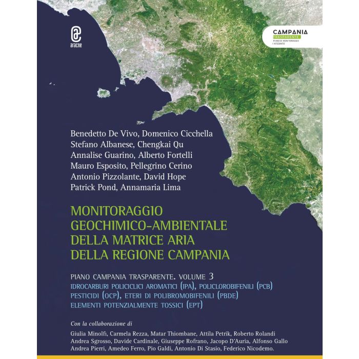 Il volume illustra i risultati del monitoraggio geochimico-ambientale finalizzato alla valutazione dell'inquinamento da Contaminanti Organici Persistenti (noti nella letteratura come POP - Persistent Organic Pollutants) e Elementi Potenzialmente Tossici (EPT) della matrice aria della Regione Campania. Tale lavoro è stato svolto nell'ambito del "Programma Campania Trasparente - Attività di Monitoraggio Integrato per la Regione Campania". Progetto finanziato dalla Regione Campania, attraverso l'IZSM, nell'ambito del Del.G.R. n. 497/2013: Fondo per le Misure Anticicliche e la Salvaguardia dell'Occupazione - Azione B4 "Mappatura del Territorio" approvato con il Decreto Esecutivo DG "Sviluppo Economico" n. 585, 14/09/2015. Le mappe prodotte rivestono particolare importanza in quanto mostrano la distribuzione nell'aria delle concentrazioni dei vari composti ed elementi analizzati (IPA, PCB, OCP, PBDE e EPT). Negli ultimi anni, la Campania è stata oggetto di attenzione mediatica per il presunto degrado dei territori agricoli di un'area tristemente nota come "Terra dei Fuochi". La mancanza di una copertura di dati geochimici ad alta densità spaziale attestanti la presenza effettiva di contaminanti nelle diverse matrici ambientali dell'area ha favorito l'insorgere e la diffusione di allarmi relativi ad emergenze ambientali non meglio definite in termini di estensione territoriale ed impatto sanitario. Le indagini effettuate, con il Progetto Campania Trasparente, sono servite ad implementare la conoscenza geochimica esaustiva dell'intero territorio regionale- che rende la Campania la Regione meglio monitorata in Italia dal punto di vista ambientale. L'auspicio è che il monitoraggio (e la relativa cartografia) prodotto in Campania venga preso a modello dalle altre Regioni italiane, in modo da coprire l'intero territorio nazionale.