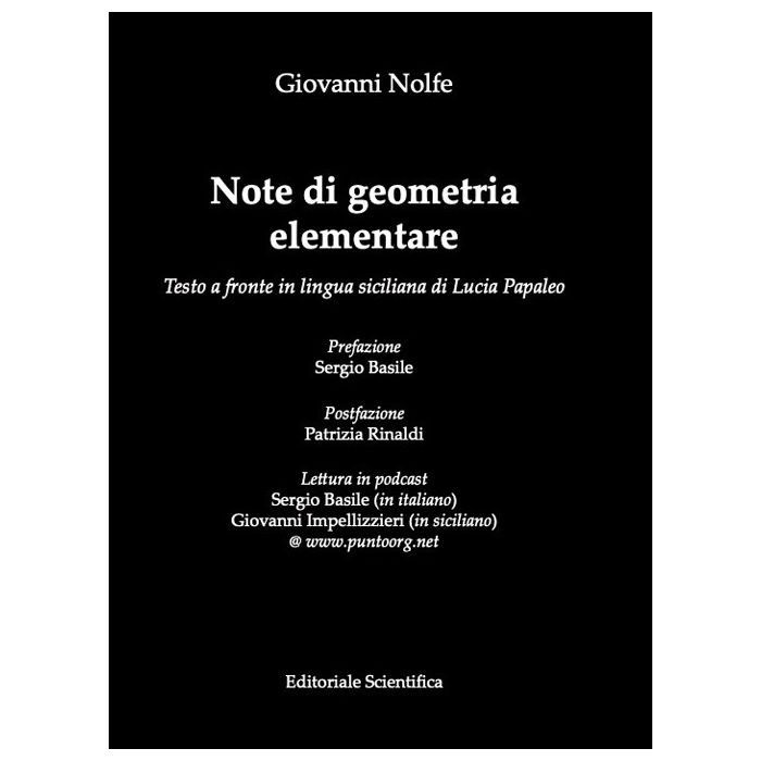 La voce della poesia di Giovanni Nolfe nasce dalla grazia, dal gioco, dalla cura d'amore; è ascolto prima che parola; è la spaccatura da cui si intravedono altri mondi possibili, altre vite, il solaio nascosto che conserva un racconto. Dalla Prefazione di Sergio Basile Note di Geometria Elementare ci avvisa, lo fa prima del numero delle poesie (1, 2, 3, 4 e degli altri numeri precisi fino alla poesia finale) che Sarà una cosa notevole dimenticare insieme. [...] La frammentarietà del verso sbeffeggia le costruzioni precise del sapere. Si libera ed emoziona. [...] Fa un po' come le pare, la poesia. Fa come gli amori trascorsi, che per non morire nei fatti devono inventarsi nuovi ricordi. (Dalla Postfazione di Patrizia Rinaldi)