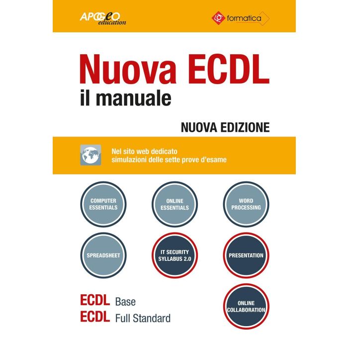 Lo strumento ideale per prepararvi all'esame NUOVA ECDL Gli autori, docenti ed esaminatori di Formatica (uno dei maggiori Test Center ECDL italiani) hanno raccolto in questo manuale la loro lunga esperienza didattica, realizzando uno strumento unico e di sicura efficacia. Il volume è aggiornato alle certificazioni Nuova ECDL - ECDL Full Standard ed ECDL Base - ed espone le funzionalità del sistema operativo Windows 7 e della versione 2010 degli applicativi Office (Word, Excel, PowerPoint) oltre a Internet Explorer e Gmail. Il modulo IT Security è aggiornato al Syllabus 2.0. Il libro si contraddistingue per la completezza, la chiarezza e la cura nell'esporre i concetti teorici dell'informatica e il dettaglio e la precisione nel presentare le parti operative e d'uso dei software applicativi Una piattaforma web dedicata - maxisoft.it/lms/ - permette di eseguire una nutrita serie di esercitazioni, di tipo teorico ed operativo, relative ai sette moduli, e corredate dalle soluzioni. Inoltre, è possibile svolgere una simulazione che riproduce fedelmente le modalità dell'esame Nuova ECDL - Full Standard (nel numero e tipo di domande e nella durata complessiva).
