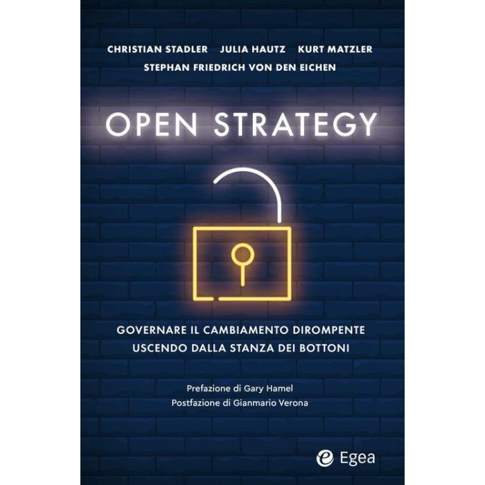 Perché alcune delle aziende di maggior successo al mondo riescono ad anticipare il cambiamento dirompente definendo e attuando strategie innovative mentre altre falliscono o arrancano? Non certo perché assumono nuovi CEO o ingaggiano consulenti dalle parcelle d'oro. Il motivo è un altro: queste imprese hanno adottato un modo nuovo di fare strategia. Invece di relegare le decisioni strategiche dentro la stanza dei bottoni, le aprono all'esterno, coinvolgendo gruppi più ampi di stakeholder: dipendenti in prima linea, esperti, fornitori, clienti, imprenditori e persino concorrenti. "Open strategy" disegna una nuova filosofia, introduce alcuni strumenti chiave, fornisce consigli pratici e riporta i casi esemplari di imprese del calibro di Barclays e Adidas per guidare i leader aziendali in questo approccio rivoluzionario alla creazione della strategia. Gli autori, esperti di strategia d'impresa provenienti dal mondo accademico e dalla consulenza manageriale, propongono strumenti specifici per ciascuna delle tre fasi del processo strategico: generazione dell'idea, formulazione del piano e implementazione. La cassetta degli attrezzi con cui aprire la strategia comprende strumenti digitali (tra cui i concorsi di idee) che permettono un'ampia partecipazione, strumenti ibridi analogico-digitali (come la «sfida del concorrente da incubo»), un workshop che gamifica il processo di sviluppo del modello di business e altri strumenti che aiutano le aziende a implementare e sostenere le iniziative di strategia aperta. La strategia aperta vanta già un curriculum strabiliante: da un'indagine svolta presso 200 leader d'impresa è emerso che, sebbene le tecniche di strategia aperta siano state impiegate solo nel 30 per cento delle decisioni strategiche, le iniziative prodotte hanno generato il 50 per cento dei ricavi e dei profitti. Questo libro è una tabella di marcia per tutte le organizzazioni interessate a raggiungere simili traguardi. Prefazione Gary Hamel. Postfazione Gianmario Verona.