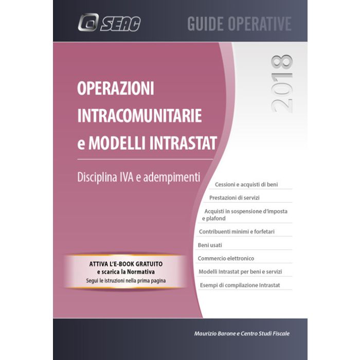Il volume è aggiornato con le semplificazioni dei modelli Intrastat previste dal D.L. n. 244/2016 ed attuate congiuntamente dall’Agenzia delle Entrate, dall’Agenzia delle Dogane e dall’ISTAT, con Provvedimento 25 settembre 2017, nonché con la Determinazione 8 febbraio 2018, n. 13799/RU, con cui sono state approvate le nuove istruzioni per la compilazione degli elenchi riepilogativi delle cessioni e degli acquisti intracomunitari di beni e dei servizi resi e ricevuti.