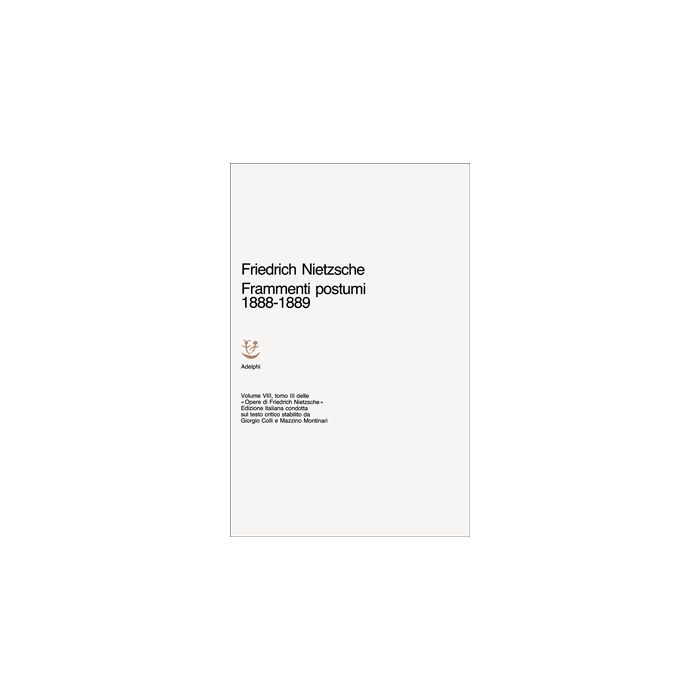 È questo uno dei volumi più sorprendenti nella edizione Colli-Montinari delle opere di Nietzsche: esso comprende, infatti, i frammenti di uno dei periodi più ricchi, folgoranti e oscuri della vita di Nietzsche, l’anno 1888, cui avrebbe fatto seguito, nei primi giorni del 1889, l’irruzione della follia. Periodo estremamente discusso, se da una parte molti vi hanno visto fin dall’inizio operanti i prodromi della follia, mentre altri hanno constatato che proprio in quei mesi Nietzsche aveva scritto alcune delle sue opere più alte, dal Crepuscolo degli idoli a Ecce homo al Caso Wagner. Grande confusione e oscurità circondavano poi, sino a oggi, gli appunti che Nietzsche andava annotando in quei mesi sui suoi quaderni, appunti che in parte erano stati inglobati nella fittizia opera «La volontà di potenza», in parte non erano mai stati decifrati, anche per l’estrema difficoltà della calligrafia di Nietzsche nell’ultimissimo periodo. Tutto questo materiale viene qui presentato nella sua integrità e in ordine cronologico. Con la pubblicazione di questo volume si può dire, dunque, che il lettore avrà modo finalmente di seguire il pensiero segreto di Nietzsche, quale sempre si depositava nei suoi quaderni, fino alle sue estreme tracce. Si potrà così vedere con quale inesorabile tenacia egli abbia perseguito fino all’ultimo l’indagine dei suoi grandi temi, dalla visione estetica del mondo alla décadence, da Wagner all’antigermanismo, che qui si manifesta alla fine nella forma clamorosa dei programmi contro Bismarck e gli Hohenzollern e della «dichiarazione di guerra» alla Germania.