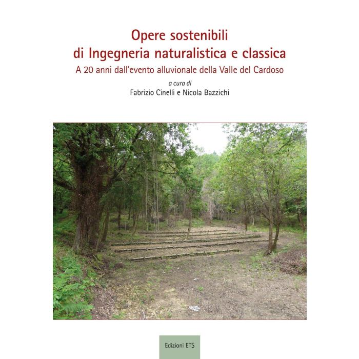 Il volume tratta delle opere di ingegneria naturalistica sostenibile che sono state realizzate nella Valle del Cardoso (Stazzema-LU), a 20 anni di distanza dall'evento alluvionale che causò danni e vittime. L'argomento è di notevole attualità in quanto la problematica del dissesto idrogeologico è oggi sotto gli occhi di tutti. Le problematiche affrontate nel convegno, di cui questi atti costituiscono una sintesi degli interventi esposti dai relatori, sono le più diverse: esempi ed utilità delle opere di I.N. nei contesti collinari-montani, specie vegetali da inserire nei contesti dove i salici sono meno adatti, durata del materiale legnoso usato, importanza del monitoraggio delle opere nel tempo, rinaturalizzazione dei corsi d'acqua e opere di sistemazione a basso impatto ambientale per una corretta gestione del territorio. Il volume si differenzia da tutti gli altri che trattano il medesimo argomento in quanto vuole ricordare il disastro che si consumò 20 anni fa con l'evento alluvionale della Valle di Cardoso e vuole riportare sinteticamente i risultati degli studi eseguiti in questi luoghi per dare indicazioni di carattere conoscitivo e tecnico ai professionisti del settore. Questi atti si rivolgono quindi principalmente agli studiosi, ai professionisti di settore e agli studenti dei corsi di laurea a carattere ambientale, ma per la semplicità di linguaggio anche ai lettori che non hanno una conoscenza specifica della materia.