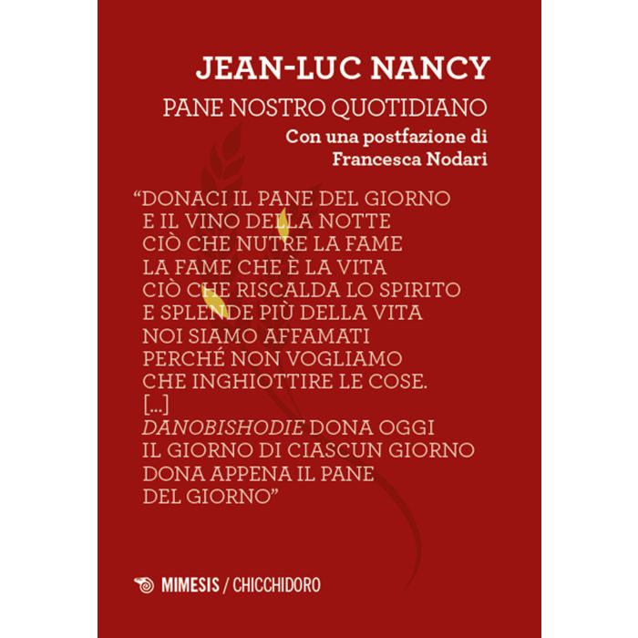 Nel testo qui presentato Nancy è mosso dal difficile tentativo di mettere in versi la complessità che sta alla base della nozione di pane. Tanto da farne, nell'inversione dal "Padre Nostro" al pane nostro quotidiano, una declaratio terminorum, ove il pane non sarebbe tanto il sostituto di un'altra divinità, ma un escamotage, per portare a datità tra le pieghe del testo la distinzione che corre tra bucca e os, e dunque andare al di là delle tematizzazioni che si sono avvicendate nella storia del pensiero. E ancora per lasciare spazio allo stupore filosofico che fa leva sulla messa in opera di quel peso di un pensiero che ininterrottamente misura il quotidiano, dischiudendo tra evocazioni, "tocchi", "abbozzi" ciò che affiora nel suo stesso approssimarsi.
