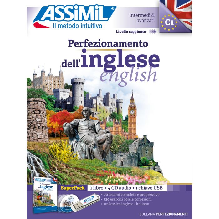 In modo progressivo, questo corso avanzato consente di perfezionare il proprio livello di conversazione corrente fino al C1 del quadro europeo di riferimento per le lingue, presentando tutti gli aspetti peculiari della società britannica: dalla cultura (arte, letteratura...) all'economia (lavoro, inglese degli affari...), passando per la vita quotidiana e le espressioni idiomatiche più comuni. I principali obbiettivi di questo corso sono: parlare inglese in modo disinvolto e coerente rispetto alle diverse situazioni; acquisire la logica della lingua; comprendere meglio le espressioni idiomatiche e i film in lingua originale; leggere e comprendere i giornali, anche specializzati; comprendere e riuscire a sostenere le conversazioni con i madrelingua. In pochi mesi sarà possibile perfezionare la propria conoscenza dell'inglese senza esitazioni né difficoltà, in modo del tutto naturale: tutto quanto potrà sembrare a priori impegnativo, grazie a questo metodo verrà assimilato senza particolari difficoltà, in modo naturale e leggero. Sarà sufficiente un po' di costanza e, seguendo i consigli forniti, persino i famosi "phrasal verbs" risulteranno di facile accesso.
