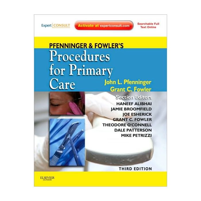 Pfenninger and Fowler's Procedures for Primary Care, 3rd Edition is a comprehensive, "how-to" resource offering step-by-step strategies for nearly every medical procedure that can be performed in an office, hospital, or emergency care facility by primary care clinicians. . Designed for everyday practice, the outline format allows speedy reference while the detailed text and clear illustrations guide you through each procedure. The new edition of this best-selling book features full-color illustrations and easy access to the complete contents and illustrations, patient forms, and more online at www.expertconsult.com.