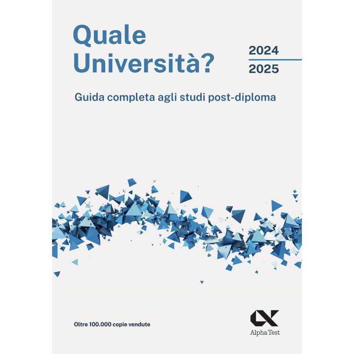 La trentunesima edizione di questa guida, aggiornata per l'anno accademico 2024/2025, fornisce tutte le informazioni utili per la scelta dell'università e degli studi post-diploma. Il volume contiene: descrizione del sistema universitario italiano e della sua organizzazione; panoramica delle opportunità di istruzione terziaria disponibili in Italia: dai corsi di laurea triennali e magistrali ai percorsi di formazione non universitari (ITS, AFAM, Forze Armate); questionario di orientamento - tra i più utilizzati nelle scuole - per individuare i propri interessi culturali e professionali; mappe che presentano i corsi di studio attivati negli atenei italiani e spiegano come sono organizzati; dati e informazioni sulle prospettive occupazionali dei vari titoli di studio; glossario e aggiornamenti per chiarire ogni dubbio sul mondo universitario: dalle modalità di iscrizione alla preparazione ai test di ammissione.