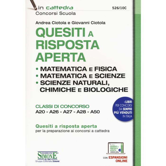 Quesiti a risposta aperta. Matematica e fisica. Matematica e scienze. Scienze naturali, chimica e biologia. Classi di concorso A20-A26-A27-A28-A50. Con espansione online