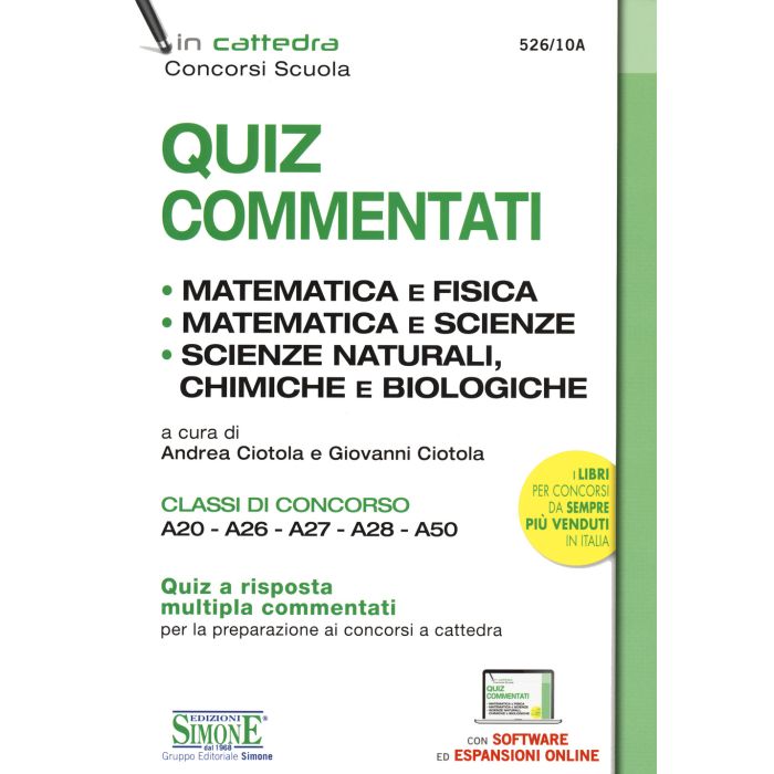 Quiz commentati. Matematica e fisica. Matematica e scienze. Scienze naturali, chimiche e biologiche. Classi di concorso A20 - A26 - A27 - A28 - A50. Con espansione online. Con software di simulazione