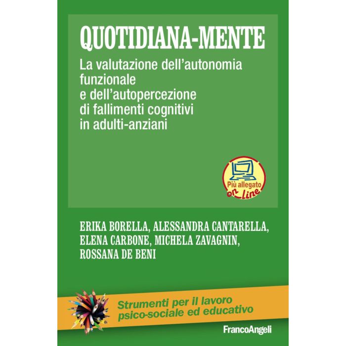 Quotidiana-mente ci confrontiamo con situazioni che richiedono l'abilità di risolvere problemi legati a vari domini funzionali (gestione del denaro, assunzione di medicinali ecc.), o viviamo momenti in cui la nostra mente viene distratta da pensieri non pertinenti, intrusivi. Ad oggi non vi sono però tecniche per indagare tali aspetti nell'arco di vita adulta. Con il presente volume si propongono due nuovi e originali strumenti di valutazione per l'adulto e l'anziano: il test "Abilità di risolvere Problemi della Quotidianità" (APQ) - adattamento italiano dell'Everyday Problems Test (EPT) - e il questionario "Mind wandering". L'APQ, che valuta la capacità della persona di risolvere efficacemente problemi pratici, viene presentato nella sua versione completa, ridotta (APQr) e parallela (APQp). Il secondo strumento, il questionario "Mind wandering", valuta la frequenza percepita di pensieri interferenti, o una certa propensione della mente a distrarsi e vagare. Questi strumenti, di facile somministrazione con carta e matita, sono particolarmente utili nella pratica clinica per la valutazione dell'adulto e dell'anziano, permettendo di individuare precocemente quelle difficoltà che possono minacciare le abilità quotidiane e l'autonomia della persona. Essi, inoltre, completano l'indagine diagnostica, sia attraverso l'esame oggettivo delle abilità funzionali che dei principali fallimenti attentivi autoriportati. I questionari di entrambi i test sono reperibili sul sito www.francoangeli.it/Area_multimediale.