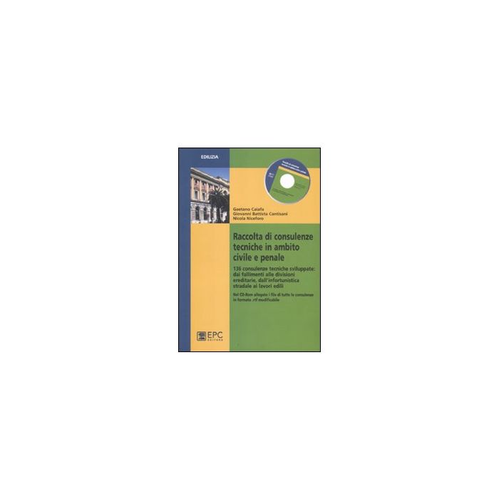 Dai fallimenti alle divisioni ereditarie, dall'infortunistica stradale ai lavori edili, dai reati relativi alla pubblica amministrazione a quelli connessi agli abusi edilizi: ecco una raccolta di 136 consulenze tecniche in campo civile e penale, tutte contenute nel CD allegato, in formato modificabile. Il volume è la naturale prosecuzione del Vademecum del Consulente tecnico d'ufficio e di parte pubblicato dallo stesso editore. Distinte in due sezioni (Civile e Penale), le consulenze sono organizzate in paragrafi che ripercorrono, di massima, gli articoli delle tabelle contenenti la misura degli onorari fissi e di quelli variabili dei periti e dei consulenti tecnici. Onorari dovuti per le operazioni eseguite su disposizione dell'autorità giudiziaria in materia civile e penale, in attuazione dell'art. 2 della legge 8 luglio 1980, n. 319. Ciascuna tematica trattata contiene più consulenze, per ciascuna delle quali è riportato, quale rapida chiave di lettura e orientamento, il quesito posto dal Magistrato e gli elementi di particolare interesse, che rappresentano la massima sintesi possibile della consulenza prestata.