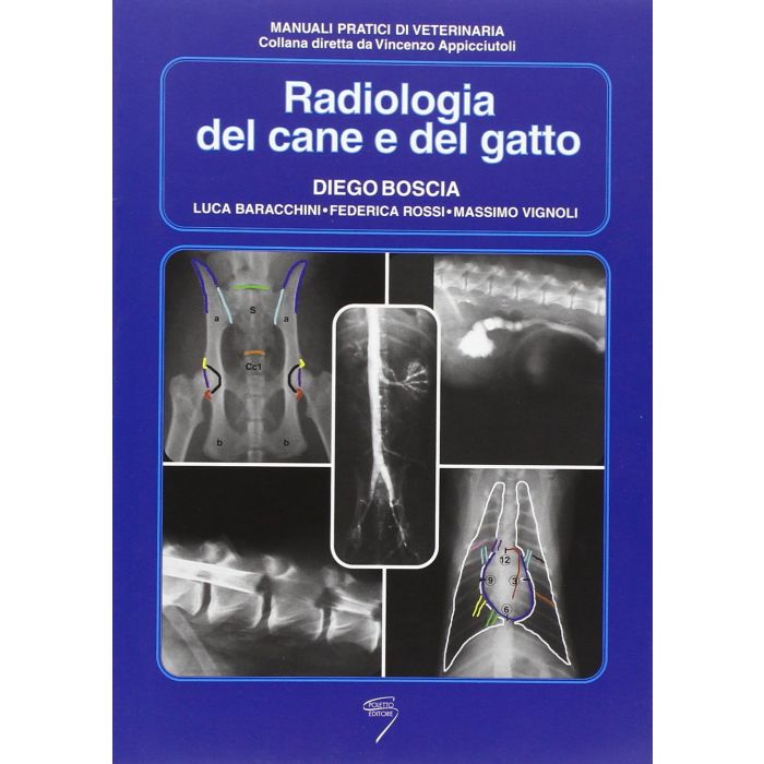| Indice | PARTE PRIMA capitolo 1 - Fondamentali di fisica capitolo 2 - Apparecchiature capitolo 3 - Radioprotezione: principi e procedure capitolo 4 - Proiezioni PARTE SECONDA capitolo 5 - Cane: Anatomia radiografica capitolo 6 - Gatto: Anatomia radiografica PARTE TERZA capitolo 7 - Apparato osteoarticolare Scheletro appendicolare Scheletro immaturo Scheletro assiale Cranio Colonna vertebrale Pelvi capitolo 8 - Cavo toracico capitolo 9 - Cavo addominale capitolo 10 - Principi e procedure contrastografiche capitolo 11 - Tomografia computerizzata capitolo 12 - Risonanza magnetica |