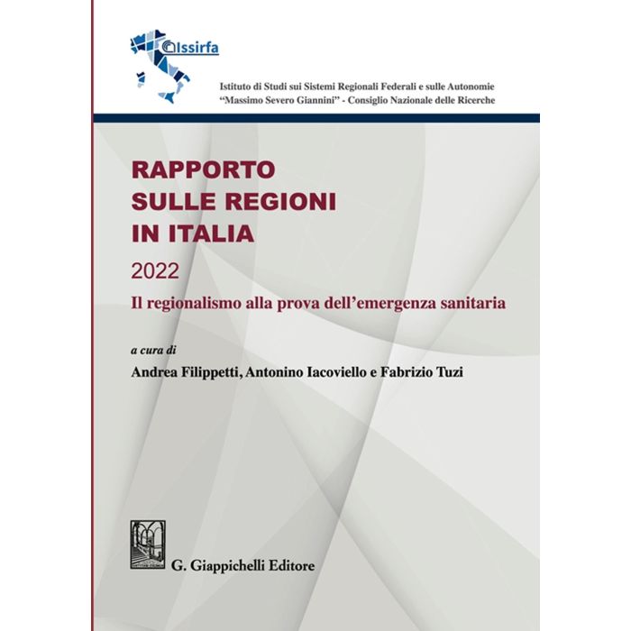 L'Istituto di Studi sui Sistemi Regionali Federali e sulle Autonomie (ISSiRFA) - "Massimo Severo Giannini" - del Consiglio Nazionale delle Ricerche, è nato nel 1971 con l'istituzione delle Regioni ordinarie, ed è il più importante centro pubblico di ricerca in Italia, e tra i più rilevanti a livello europeo, sui temi del regionalismo, del federalismo e delle autonomie negli ordinamenti costituzionali che si ispirano a principi del decentramento e del governo multilivello delle collettività. L'ISSiRFA segue sistematicamente e con un approccio pluridisciplinare l'esperienza regionale e la dimensione territoriale delle politiche pubbliche nel contesto dell'integrazione europea e dell'interdipendenza globale, con specifiche competenze negli ambiti del diritto costituzionale, pubblico, amministrativo e regionale, e delle scienze sociali, economico-finanziarie, politiche e geografiche. L'ISSiRFA ha già pubblicato, tra l'altro, sette rapporti sullo stato del regionalismo in Italia. Questo Rapporto 2022 ha per oggetto, in particolare, le più recenti evoluzioni del regionalismo italiano a seguito dell'emergenza sanitaria dovuta all'impatto del Covid-19. Più in dettaglio, il Rapporto presenta un ampio ventaglio di contributi scientifici di ricercatori, esperti e studiosi particolarmente competenti, e si articola in tre Parti: la prima è dedicata alle "Regole"; la seconda è relativa alla "Finanza regionale"; e la terza concerne le "Politiche". Nella prima Parte si analizza quel peculiare processo di ridefinizione dei rapporti tra Stato e Regioni che si è subito venuto determinando a seguito dell'emergenza sanitaria, e che ha comportato la concentrazione della funzione regolatoria nelle mani dello Stato secondo una tendenza centripeta che, tuttavia, è stata per alcuni aspetti corretta e aggiustata anche in base al principio di leale collaborazione. A tal riguardo, poi, si è rafforzato il ruolo degli esecutivi, soprattutto nei rapporti con le autorità statali, seppure non possano essere sottovalutate le funzioni esercitate dai Consigli regionali con finalità di indirizzo, monitoraggio e controllo. Nella seconda Parte si prendono in considerazione gli interventi finanziari che, con molteplici modalità di azione, sono stati predisposti dalle Regioni a partire dai loro bilanci e mediante la rimodulazione dei fondi strutturali con la specifica finalità di sostenere le persone, le famiglie, le collettività e le imprese gravemente colpite dalla crisi sociale ed economica che è scaturita a seguito dell'emergenza pandemica e dell'adozione delle misure di restrizione di una vastissima gamma di attività individuali e collettive. Nella terza Parte, infine, si procede all'analisi delle politiche pubbliche di competenza regionale che sono state particolarmente sollecitate a seguito della pandemia, in specie nelle materie della sanità, delle attività produttive e del sistema creditizio, sia concentrando lo sguardo sugli effetti che la risposta all'emergenza pandemica ha prodotto sulle modalità dell'azione pubblica in chiave territoriale - tra l'altro, con specifico riferimento alle aree urbane e alle aree interne - sia considerando quelle politiche che hanno contribuito ad accrescere la complessiva resilienza delle collettività mediante la valorizzazione del terzo settore come motore del "welfare di comunità" e l'amministrazione condivisa come risorsa di rigenerazione durante la pandemia.