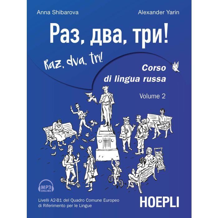 Raz, dva, tri! (Un, due, tre... via!) è il motto di questo corso di lingua russa in due volumi, che affronta con competenza, leggerezza e humour il compito di attivare le molteplici dimensioni della comunicazione verbale. Il secondo volume, strutturato in 9 lezioni (corrispondenti a 150-170 ore accademiche), consente di raggiungere il livello B1 del Quadro Comune Europeo di Riferimento per le Lingue e può essere adottato nei corsi universitari sia come continuazione del primo volume sia come manuale a sé stante. Ogni lezione è articolata in tre parti. La prima, ???? ? ????????, propone dialoghi tratti dalla vita quotidiana per esercitare le quattro abilità fondamentali della conoscenza della lingua. La seconda parte, ???????????, presenta testi sulla storia, la cultura e l'arte russe. La terza parte, ??? ?????, è suddivisa in due sezioni: ????? ??????????, dedicata alle nozioni grammaticali descritte in modo chiaro e progressivo, e ??????? ?????, che raccoglie il lessico incontrato nella lezione. Completano il manuale la sezione di riepilogo grammaticale finale, un dizionario che comprende tutto il lessico del volume, le soluzioni degli esercizi e le trascrizioni degli audio. I file audio Mp3 dei testi e dei dialoghi si possono ascoltare inquadrando i QR-Code presenti all'inizio di ogni unità oppure scaricandoli all'indirizzo www.hoeplieditore.it alla pagina dedicata al volume, dove sono disponibili anche esercizi aggiuntivi per la verifica degli argomenti affrontati nelle lezioni.