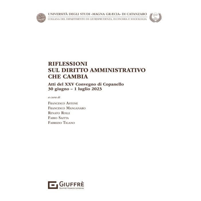 Il volume raccoglie gli Atti del XXV^ Convegno di Copanello, significativamente intitolato Riflessioni sul diritto amministrativo che cambia. Si è deciso, infatti, in questa particolare occasione, di tornare a riflettere sui temi più significativi che in questo quarto di secolo sono stati oggetto dei precedenti convegni, per verificare come si siano evolute l'attività amministrativa, la dottrina e la giurisprudenza su alcuni specifici argomenti. Ne è sortito un quadro complessivo in cui invarianti e novità sono state insieme rappresentate nei lavori che qui si pubblicano.