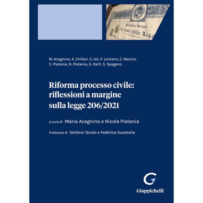 La legge 26 novembre 2021, n. 206, di delega al Consiglio dei Ministri per una riforma del processo civile, prevede un mutamento delle prerogative del giudice e del rito per le persone, i minorenni e le famiglie, con alcune novità specifiche che necessitano di una complessa attività di indagine ed interpretazione. La riforma del processo civile approdata in Gazzetta il 9 dicembre scorso, entrata in vigore il 24 dicembre 2021 è già esposta a critiche positive e a valutazioni negative. Il presente contributo, rivolto principalmente agli operatori del diritto e agli studenti di giurisprudenza, è curato da un magistrato e da un avvocato che hanno coordinato i saggi di magistrati, professori universitari di procedura civile e avvocati che dal loro punto di vista hanno esaminato gli aspetti salienti della riforma, evidenziandone le luci e le ombre. Autori: Acagnino Maria; Ioli Camilla; Spagono Salvatore; Platania Nicola; Lentano Francesco; Chillari Alessandra; Raiti Giovanni; Marino Concetta.