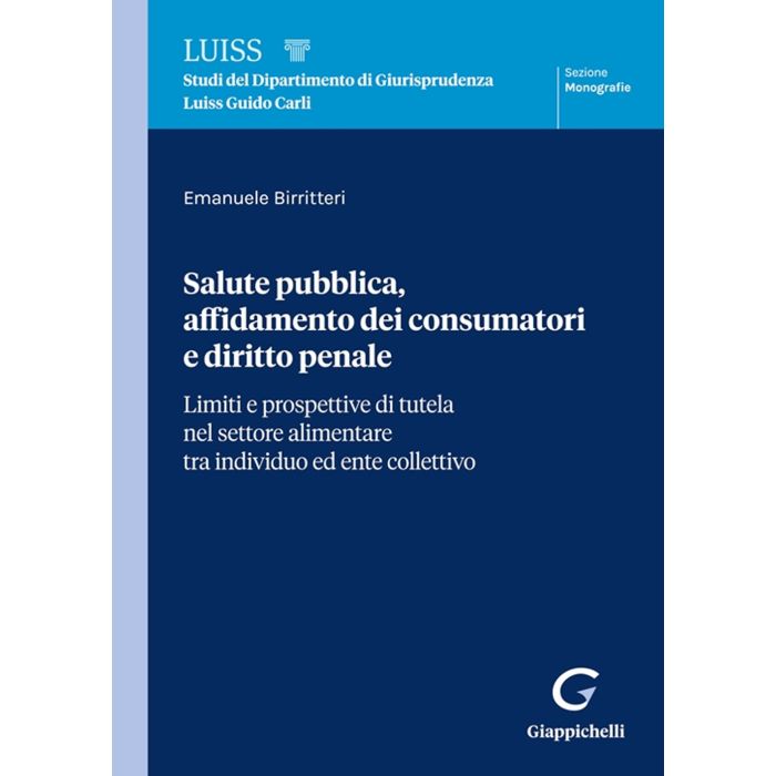 Il volume "Salute pubblica, affidamento dei consumatori e diritto penale" esamina caratteristiche, limiti e prospettive di riforma delle fattispecie criminose a tutela della salute pubblica e dell'affidamento commerciale dei consumatori nel settore alimentare, avuto riguardo alla responsabilità di individui ed enti collettivi. La ricerca, muovendo da un'analisi dei profili criminologici e delle categorie generali rilevanti, perviene anzitutto all'elaborazione di una definizione di 'reato alimentare' che aspira a mettere ordine in una materia sviluppatasi in modo frammentario e in assenza di un preciso indirizzo di politica-criminale, ridefinendo il perimetro delle figure di reato da collocare in tale ambito. Lo studio sottopone quindi a vaglio critico l'assetto normativo vigente e i progetti di riforma discussi negli ultimi anni in campo istituzionale e scientifico, passando poi a indagare le soluzioni prospettate nei principali sistemi di common law (Regno Unito e Stati Uniti). L'ultima parte, infine, delinea una proposta di complessiva revisione della disciplina, sui versanti interno e sovranazionale, intesa a razionalizzare e ammodernare il 'diritto penale alimentare'.
