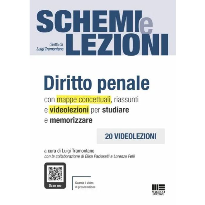 Il libro che stai per sfogliare si propone come strumento di studio e di ripasso sintetico, ma allo stesso tempo completo, sul Diritto penale. Si rivolge principalmente ai partecipanti ai concorsi pubblici, agli studenti universitari, ma anche agli operatori del diritto, per aiutarli a memorizzare facilmente tutti gli argomenti e i principi fondamentali della materia (Legge penale: principi e applicazione, reato, imputabilità, dolo, colpa, circostanze, concorso di persone e di reati, pene, estinzione del reato e della pena, reati contro la P.A. e altri principali reati, riforma Cartabia). Ogni capitolo contiene una selezione di mappe concettuali rappresentate inizialmente sotto forma di schemi generali, per poi essere "esplicate" con maggiori dettagli, mettendo in evidenza i collegamenti e le interconnessioni tra categorie, principi, e istituti di cui si compone la materia. Alla fine di ciascun capitolo sono presenti test di verifica e quiz a risposta multipla, finalizzati a consolidare la memorizzazione degli argomenti e la preparazione in vista delle prove. Il punto di forza del libro è il collegamento "smart" tra le mappe concettuali (generali ed esplicate) presenti sul testo cartaceo e le videolezioni curate dall'autore (20 lezioni per una durata totale di 12 ore). Ogni videolezione è costruita sulle mappe concettuali che declinano tutte le parole chiave e tutti i concetti fondamentali della materia. Le videolezioni sono facilmente raggiungibili grazie al codice QR-code riportato sulla pagina iniziale di ciascun capitolo. Le mappe, gli schemi e le videolezioni sono aggiornate alla recente Riforma Cartabia.