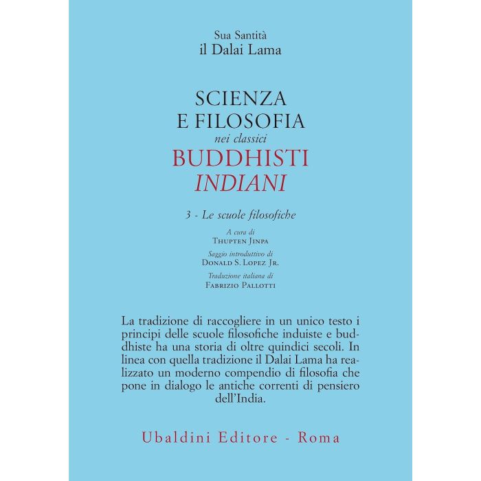 Il terzo volume della serie concepita e redatta sotto la supervisione di Sua Santità il Dalai Lama, un'opera in quattro volumi che costituisce un compendio delle indagini scientifiche e filosofiche del buddhismo indiano sulla natura della realtà , presenta ed esamina approfonditamente i principi delle scuole di filosofia dell'India. Nel subcontinente indiano, già dal primo millennio, i proponenti delle varie scuole filosofiche scrivevano opere dossografiche esponendo una sorta di storia o enciclopedia della filosofia. Si elencavano le diverse posizioni dottrinali, in una gerarchia che culminava nel punto di vista della propria scuola di appartenenza, al fine di dimostrare come i propri principi fossero superiori a quelli degli altri. Secoli più tardi, anche il Tibet sviluppò la sua tradizione di opere dossografiche sui principi filosofici (grub mtha'), spesso centrate sulle quattro scuole classiche della filosofia buddhista. Quest'opera, che in tibetano è intitolata Compendio di filosofia, è redatta nel solco di tale tradizione, ma vi aggiunge un tocco di modernità . Espone i principi delle scuole hindu classiche Sâ?khya, Yoga, Vai?e?ika, Nyâya, Mîmâ?sâ e Vedânta, della scuola Jaina, nonché i punti di vista della scuola materialista Lokâyata; passa poi alla presentazione delle principali scuole di pensiero buddhiste indiane Vaibhâ?ika, Sautrântika, Cittamâtra (o Yogâcâra) e Madhyamaka, ordinandole come gradini progressivi in una scala di comprensione che scende sempre più in profondità . Ma piuttosto che adottare una prospettiva polemica al pari dei suoi antichi predecessori, il compendio si propone di indagare ogni tradizione nel modo più autentico possibile, riferendosi e citando i testi sacri di ciascuna scuola in modo da concedere a ogni singola tradizione filosofica la possibilità di parlare di sé.