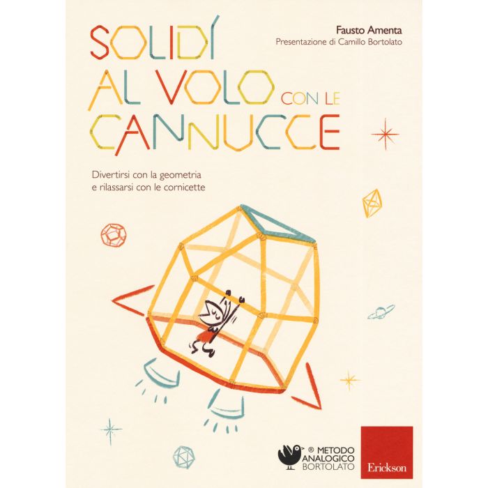 "Solidi al volo con le cannucce" è una proposta operativa per occupare in modo proficuo i momenti di pausa. I bambini affronteranno la geometria manipolando e costruendo solidi e figure complesse senza quasi accorgersene. Un apprendimento intuitivo, nello stile del Metodo Analogico. Oltre 40 solidi da costruire con le cannucce per scoprire, in un colpo solo, linee spezzate aperte e chiuse, spigoli, vertici e facce. Le cornicette sono un'occasione per concentrarsi e rilassarsi e nello stesso tempo per cimentarsi in attività sempre più impegnative e affascinanti. Una proposta che si può utilizzare fin dalla classe prima e per tutta la primaria con progetti e sperimentazioni sempre nuove, per nutrire l'innata voglia di scoprire e fare, imparando con le proprie mani. Presentazione di Camillo Bortolato.