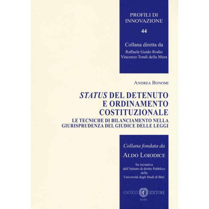 Il volume in questione approfondisce la tematica dello status costituzionale del detenuto alla luce della giurisprudenza della Corte costituzionale: il lavoro rivolge una particolare attenzione alle tecniche di bilanciamento nell'ottica di salvaguardare sempre la dignità della persona, pur se sottoposta alla restrizione della libertà personale.