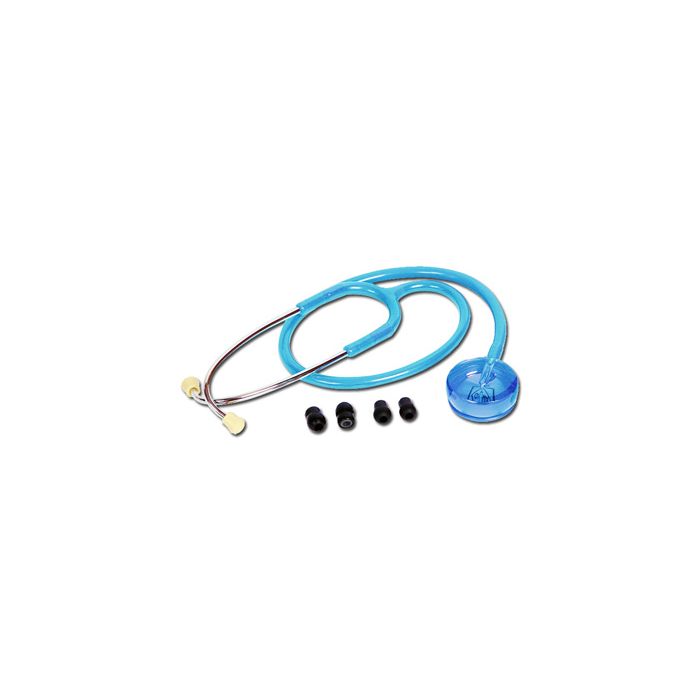 Stetoscopio dall’elegante design per applicazione neonatale. Fornisce ottime prestazioni acustiche grazie alla qualità dei componenti. Sia il padiglione che la lira sono colorati e trasparenti. Fornito in confezione blister trasparente.