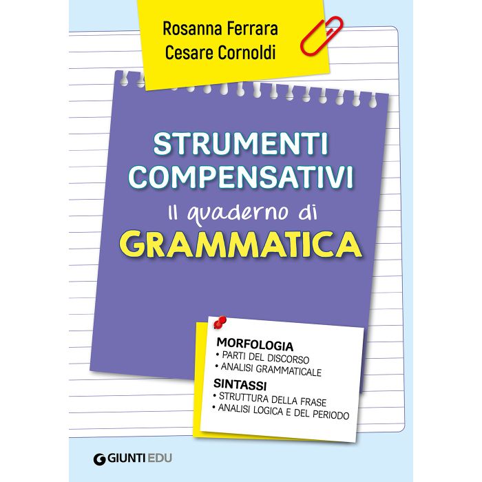 Il volume raccoglie numerosi strumenti utili ad affrontare le difficoltà che i bambini e i ragazzi con BES e DSA possono incontrare a scuola nello studio della Grammatica, in particolare negli ambiti della Morfologia e della Sintassi in cui si trovano a fare i conti con problematiche ricorrenti. I materiali sono pensati per favorire la comprensione dei contenuti ed essere di immediato utilizzo e possono quindi risultare utili per tutti. Il volume è ricco di esempi che presentano "in situazione" i vari elementi della grammatica, attraverso un utilizzo mirato delle immagini e dei colori: tutti elementi che sono funzionali al consolidamento e alla memorizzazione degli apprendimenti. L'indice è stato impostato per facilitare la consultazione dei vari argomenti e la loro reperibilità in funzione dei bisogni dei ragazzi.