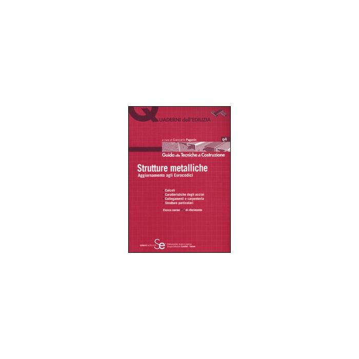 Il Quaderno "Strutture metalliche" tratta ed approfondisce le problematiche relative a progettazione, calcolo, esecuzione e verifica delle strutture in acciaio, a partire dalla scelta del materiale e dalla schematizzazione della struttura fino alla definizione dei dettagli e delle connessioni tra i diversi elementi, come codificate dagli Eurocodici (in particolare l'Eurocodice 3) costituenti ormai la base comune della normativa tecnica di ogni singolo Paese europeo. Nello spirito dell'intera opera, le tecniche sono presentate con un approccio sintetico che mira a inquadrare gli aspetti più rilevanti da tenere in considerazione nella progettazione, realizzazione e controllo, al fine di prevenire i rischi legati a una cattiva concezione o esecuzione degli elementi componenti che vengono illustrati in forma chiara e semplificata per permettere al tecnico generalista di inquadrare la tematica e valutare il ricorso alla tecnica specifica.