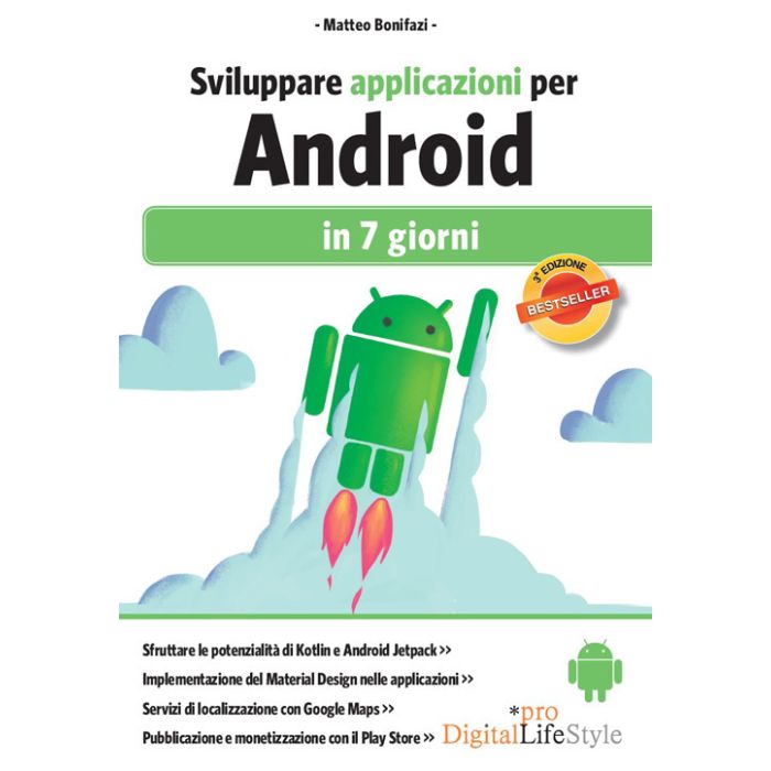 Al giorno d'oggi i dispositivi mobile permettono all'utente di fruire di servizi, informazioni, intrattenimento, svago e supporto a qualsiasi attività quotidiana, grazie alla connessione permanente e alla grande potenza computazionale. In questo ecosistema Android riveste un ruolo chiave, con una quota del mercato mondiale superiore al 75%. Questo libro ti accompagnerà nella scoperta delle diverse funzionalità e caratteristiche dell'API di Android. Potrai acquisire conoscenze sul design, sul ciclo di vita e sulla UI di un'applicazione Android attraverso esempi pratici, da usare in seguito come base per lo sviluppo delle tue applicazioni. Il libro è diviso in sette capitoli, ognuno dei quali rappresenta idealmente un giorno della settimana. Dopo sette giorni di teoria e sperimentazione, sarai in grado di sviluppare in totale autonomia le tue app e di pubblicarle sul Google Play Store.